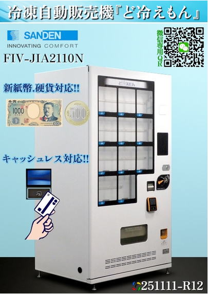 ![]() サンデン 冷凍自動販売機 『ど冷えもん』 FIV-JIA2110N 2021年式 単相100V ![]() (税込・送料別) |